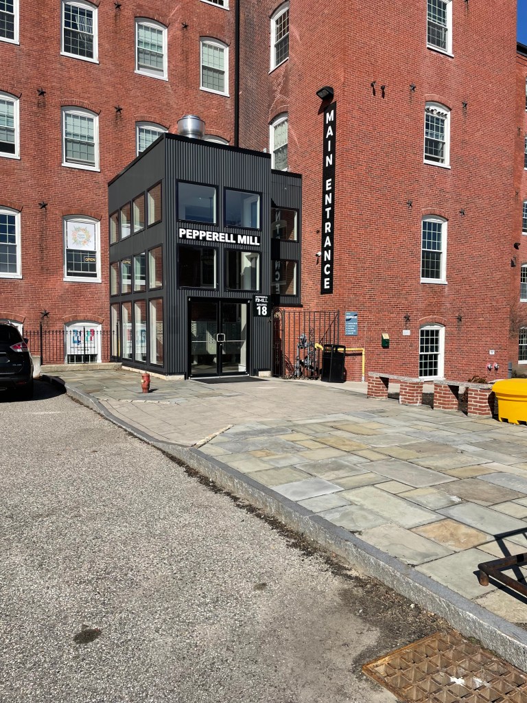 To find my office, It is best to set your GPS to “Pepperell Provisions.” That’s the name of the deli in the lobby of my building. This is the view of the parking lot. Coming from Main Street in Saco, it’s the first right turn after the bridge over the Saco River.